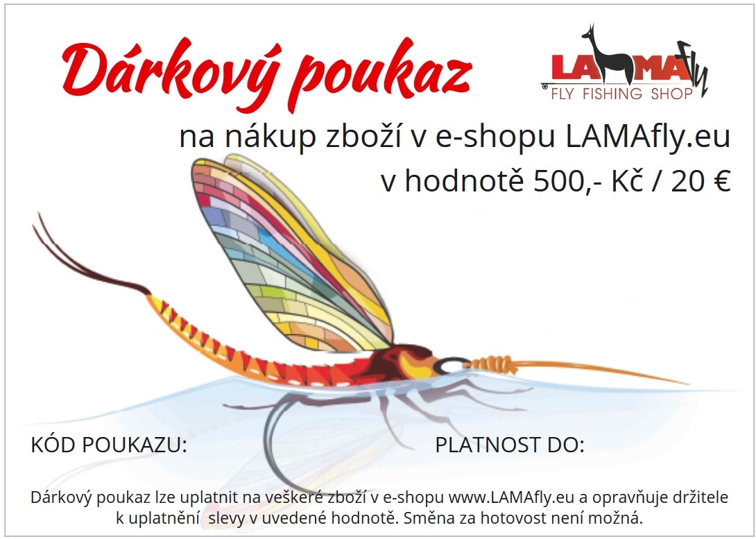 Nevíte si rady s dárkem pro muškaře nebo vazače mušek? Máme pro vás jednoduché řešení! Dárkový poukaz LAMAfly v hodnotě 500 Kč vyřeší váš problém za pár kliků. Ideální dárek k svátku, narozeninám nebo pod stromeček jako milá pozornost.