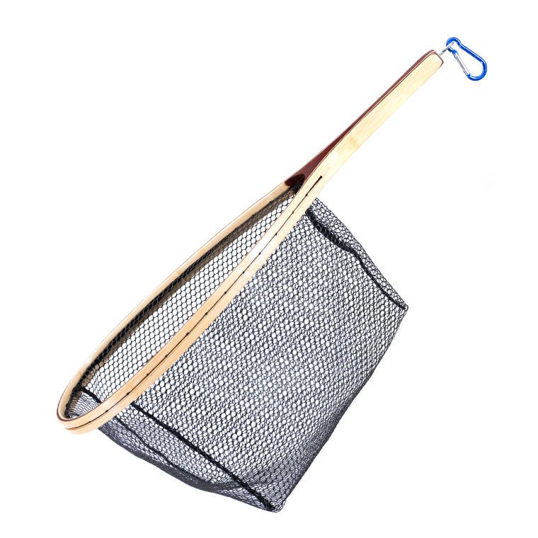 Jemná černá pogumovaná síťka je osazena v lehkém, ale mimořádně pevném dřevěném rámu. Díky pogumování je síťka šetrná ke sliznici i šupinám ryby, háčky se v ní nezamotávají a po vyproštění ryby se okamžitě vrátí do původního tvaru.
