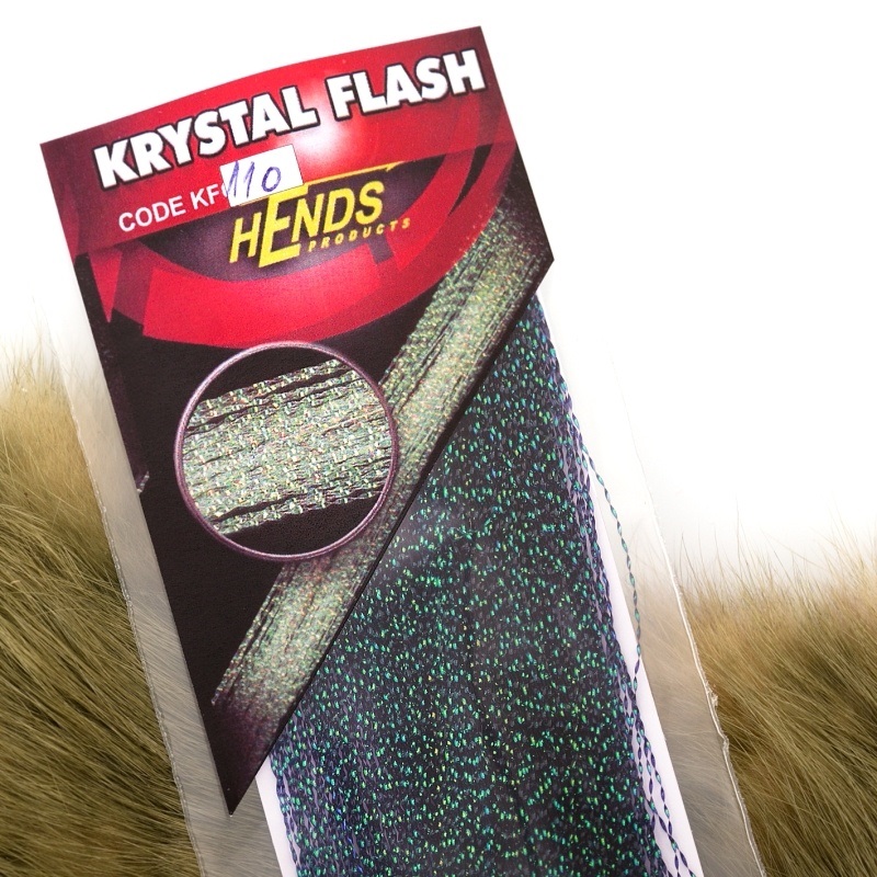 Hends Krystal Flash je těžko nahraditelný materiál při konstrukci především streamerových mušek. Svým leskem a pohybem udělá z obyčejné mušky účinnou zbraň. Můžeme ho také použít na mnoho dalších částí jiných typů mušek jako jsou střapečky, tipy, kroužkování apod.