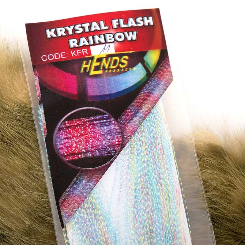 Kroucené vlasy Hends Krystal Flash Rainbow z jemné fólie s iridiscenčním leskem v délce 25cm. Duhově zbarvené vlasy jsou velmi zajímavým materiálem pro vázání streamerů všech typů a velikostí.