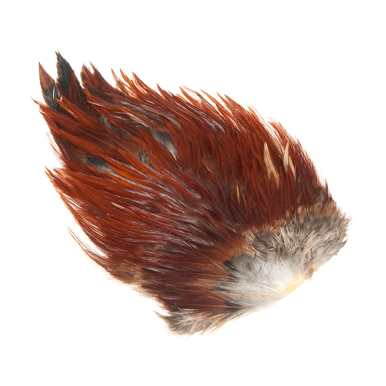 Přírodní kohoutí skalp z indického plemene kohouta. Jsou ideální pro větší suché mušky nebo najdou uplatnění pro vázání streamrů a wooly buggers. Tyto skalpy využijí i vyznavači přívlače používající nástrahy z peří tzv. koguty.