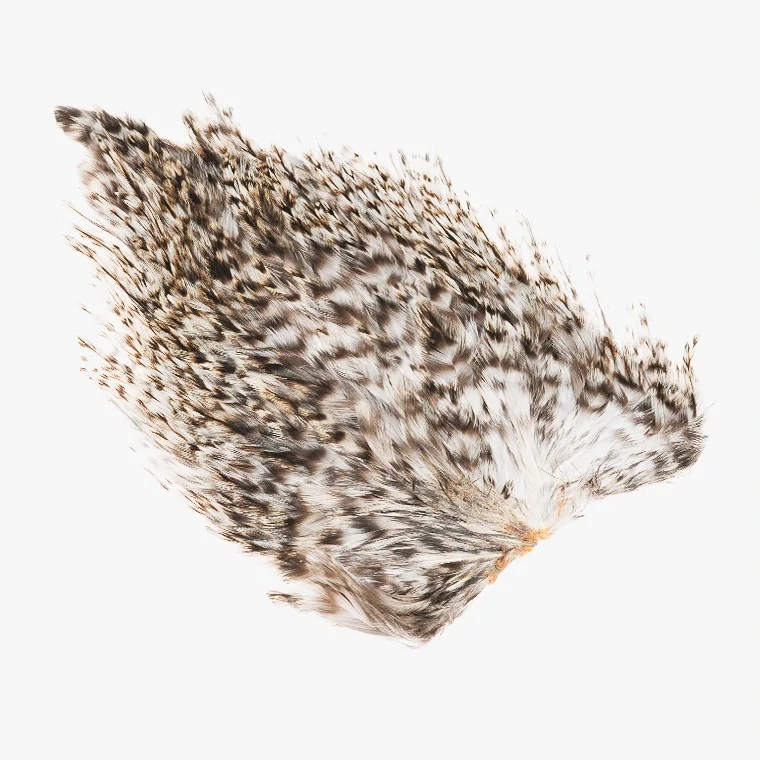 Přírodní kohoutí skalp z indického plemene kohouta. Jsou ideální pro větší suché mušky nebo najdou uplatnění pro vázání streamrů a wooly buggers. Tyto skalpy využijí i vyznavači přívlače používající nástrahy z peří tzv. koguty.