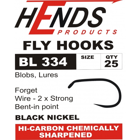 Háčky Hends BL 334 jsou vhodné především pro mušky typu blob, lura, ale i jiné typy mušek určených pro větší a velké ryby. Háček má zkrácené raménko, velký oblouček a je vyroben ze zesíleného drátu.